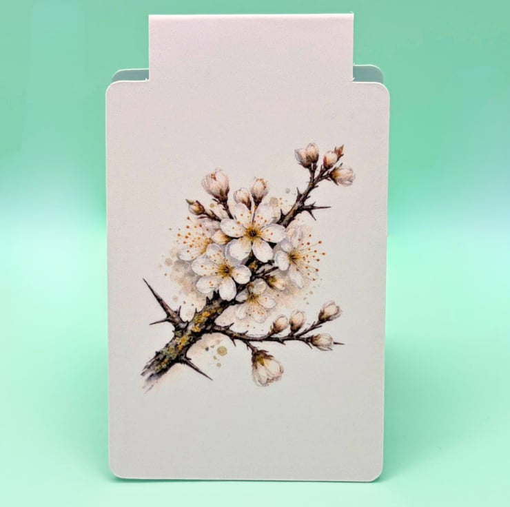 A delicate and meaningful magnetic bookmark featuring blackthorn blossom, inspired by the beauty of the British countryside. In folklore blackthorn is often associated with resilience and protection, representing strength through difficult times and the promise of renewal.