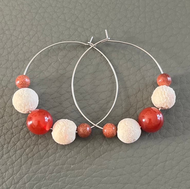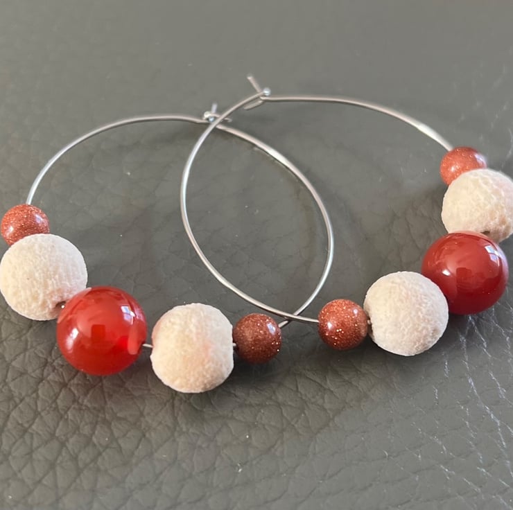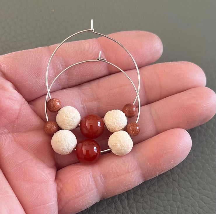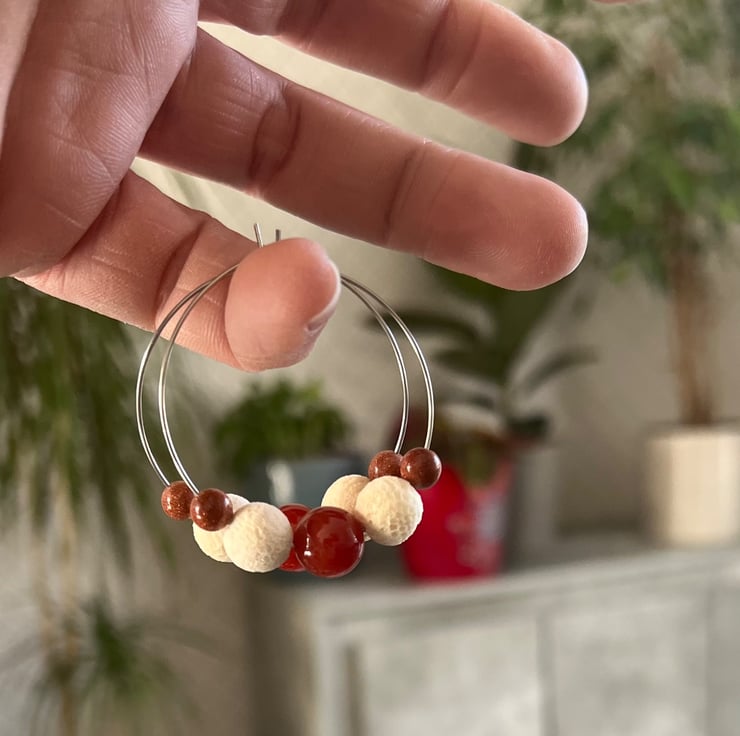 Elegant handmade hoop earrings featuring carefully selected natural gemstones. Each pair is crafted by hand, making every piece unique. Lightweight and comfortable, these earrings add a subtle, natural touch to both everyday outfits and special occasions. Perfect as a thoughtful gift or a timeless addition to your jewellery collection.