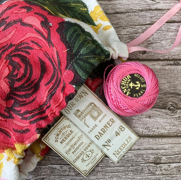 Drawstring bags are useful for so many things and this one is really pretty too. You can use them for keeping things together like craft materials, make up and those little things you want to keep together in your bag. You could hang them up to brighten up a room and they also make great reusuable gift bags.