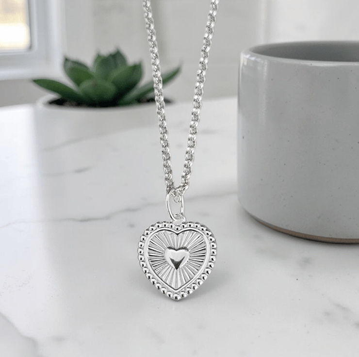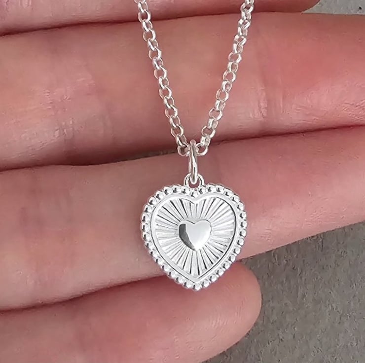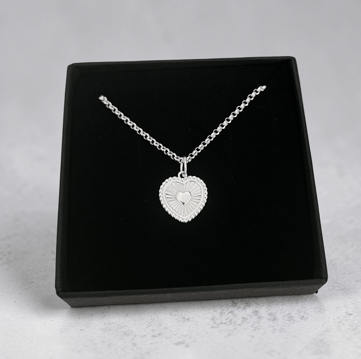 A perfect addition to any jewellery collection. A stunning heart rays charm long Necklace that has style and beautifully designed and crafted with top quality Sterling silver.
