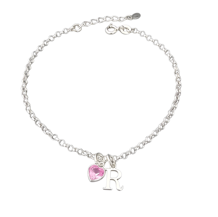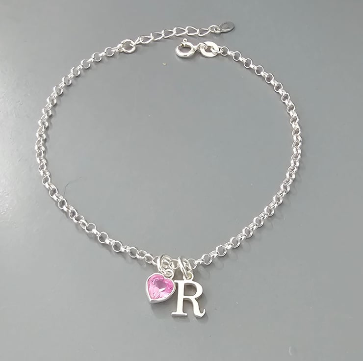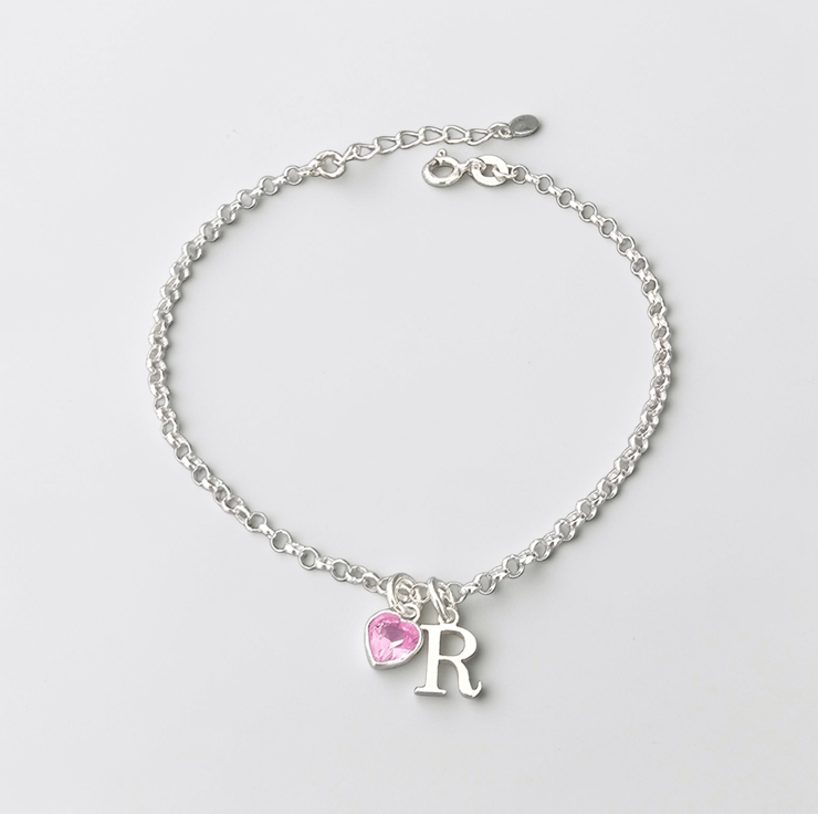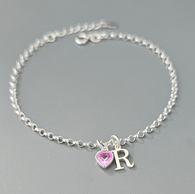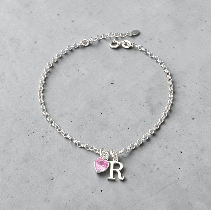 Sterling Silver dainty Initial and heart Birthstone adjustable Bracelet perfect for gifting or one for your jewellery collection. With a choice of 12 stunning Birthstone colours.