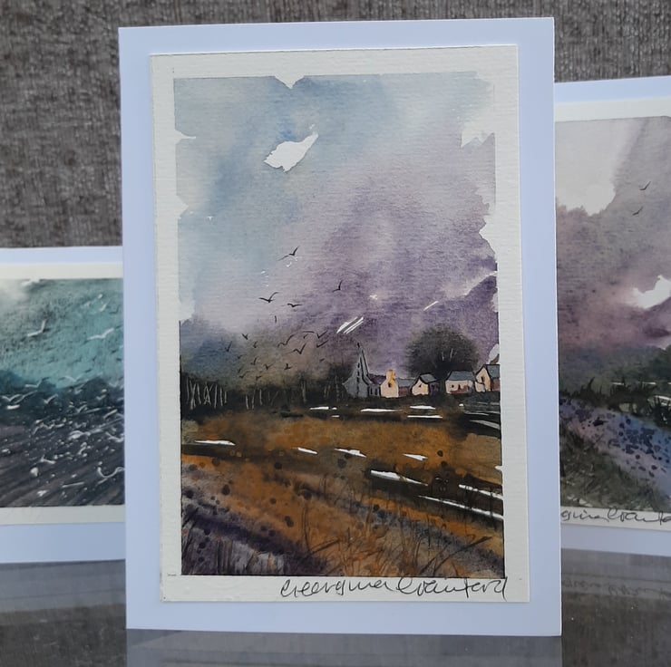 Painted on watercolour paper and mounted onto quality, white card stock.