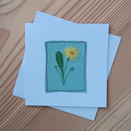 Made from a lovely pink linen, it depicts a couple of red tulips sewn using free motion embroidery over appliqued snippets of fabric. Details and depth are added with various coloured threads.