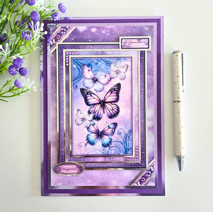 Send a little flutter of joy with this lovingly handmade Butterfly Birthday Card. Handcrafted in soft purple and lilac tones, this keepsake card is perfect for anyone who loves nature and elegance.