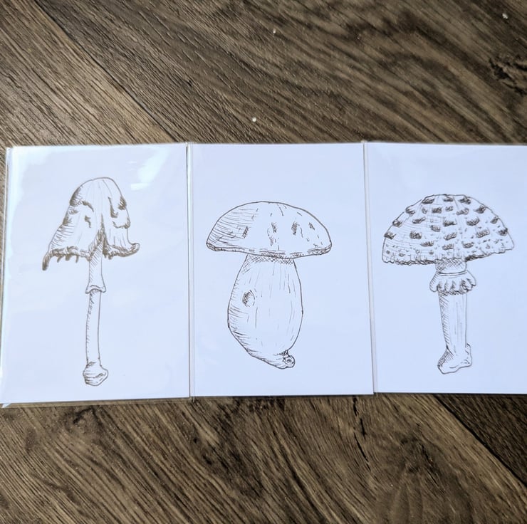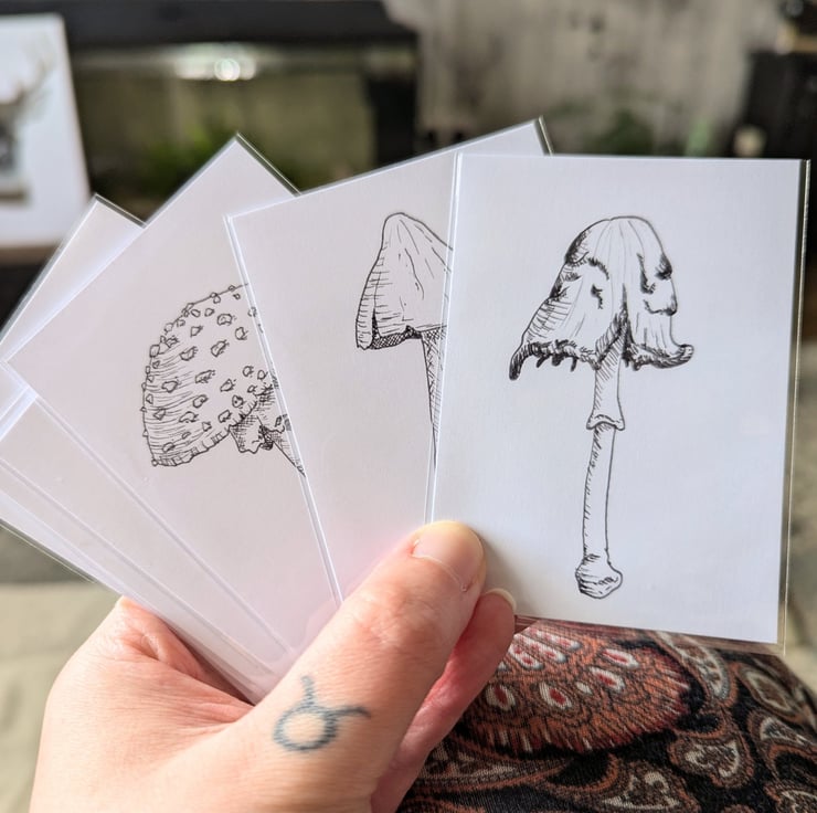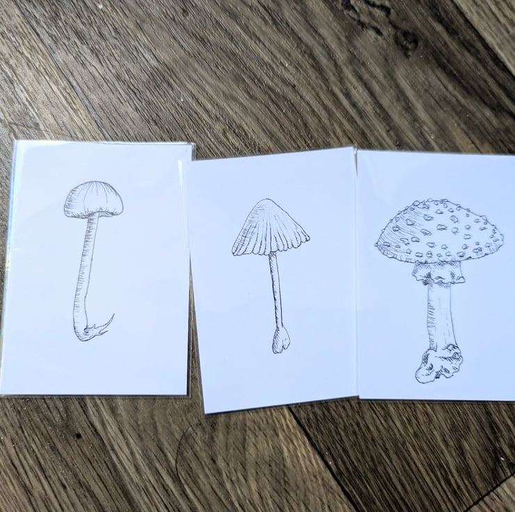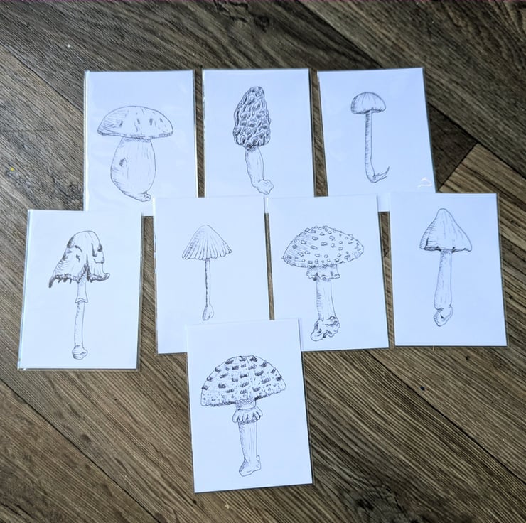 This is a set of 8, hand sketched mushroom ACEOs. Originally sketched in pencil and outlined with a black felt-tip liner.