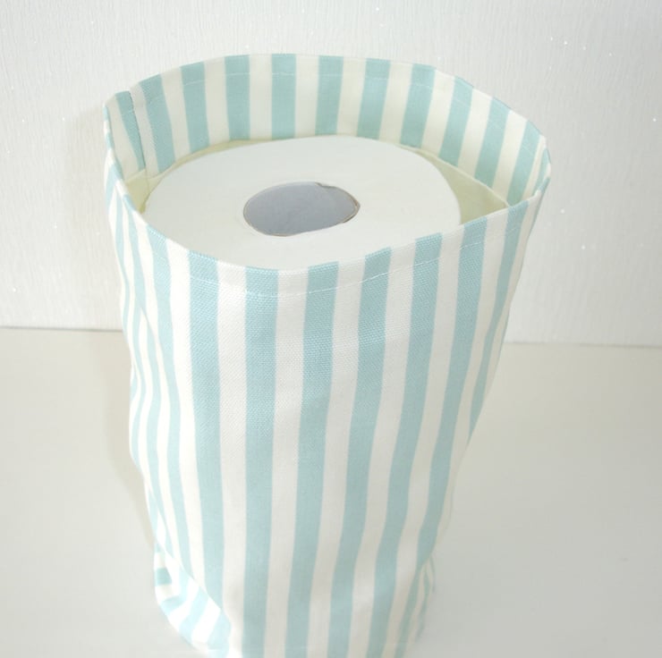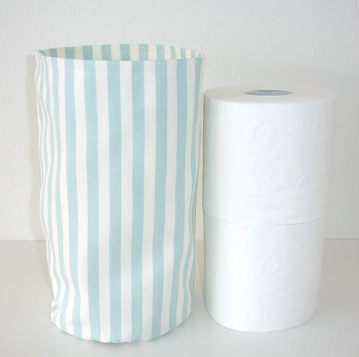 Measuring approx 10" tall with a diameter of 6" this tub will sit happily on top of the cistern or next to the loo to hold a couple of spare rolls. Keeps your bathroom / downstairs loo well stocked and tidy.