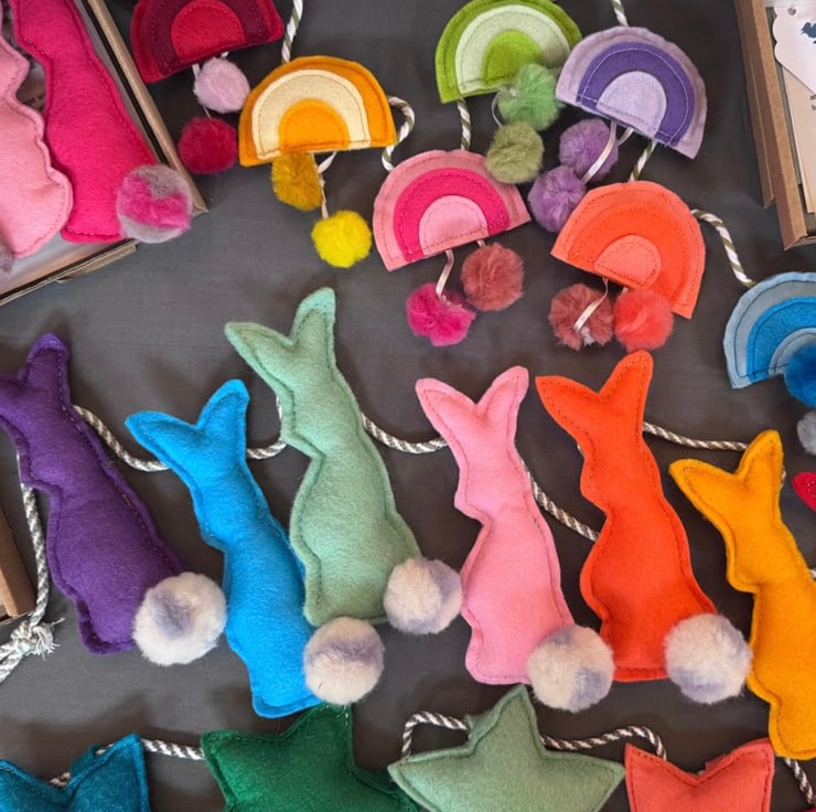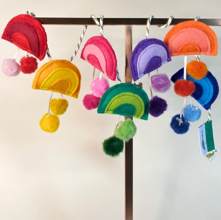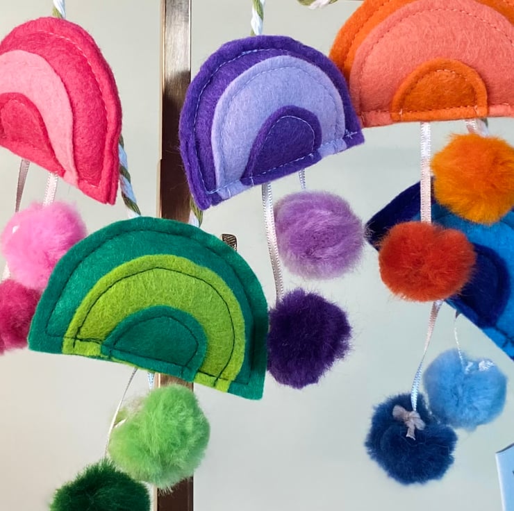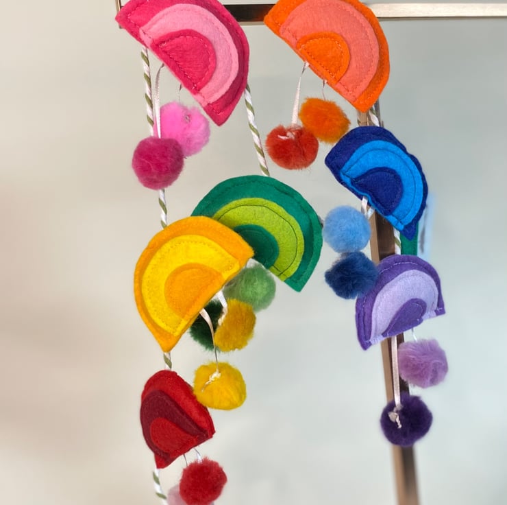 7 WOOL-RAYON FELT RAINBOWS WITH WOOLTOP POMPOMS