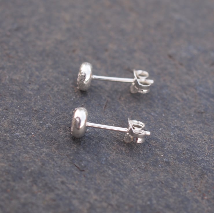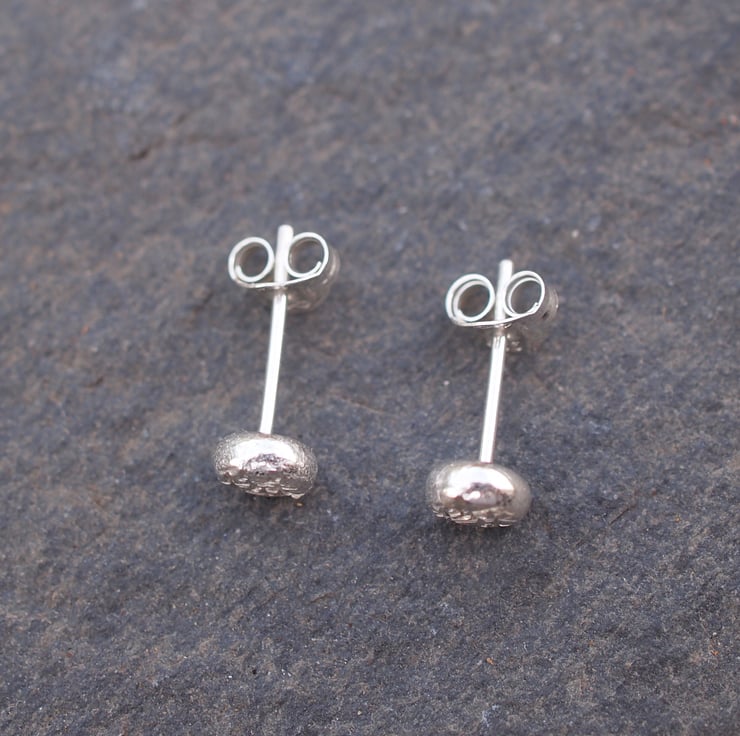 Small silver stud earrings, unisex earrings made from pebbles of recycled silver.