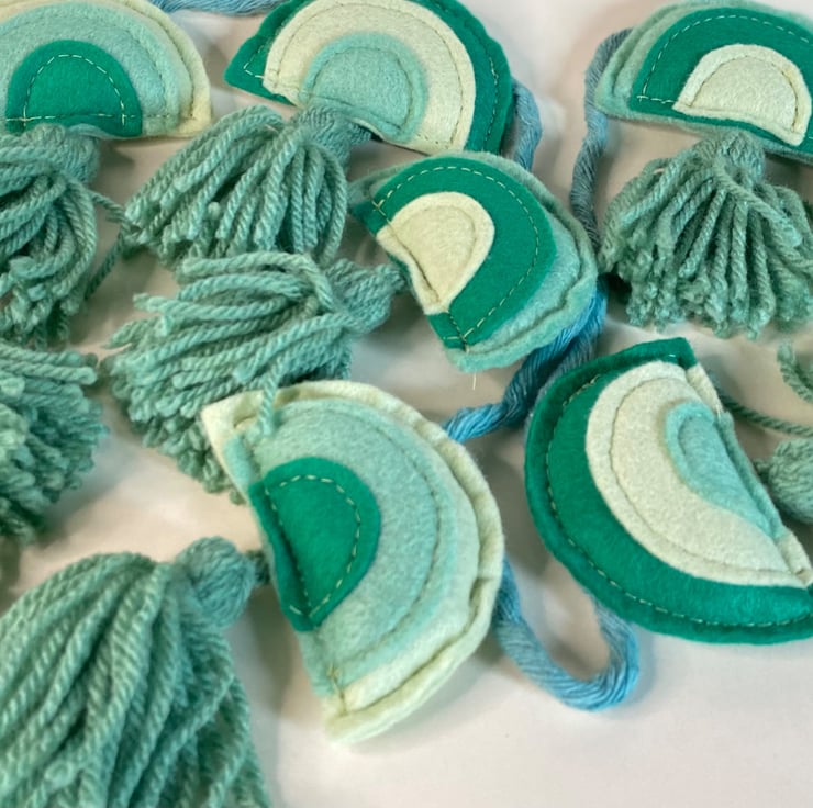 9 WOOL-RAYON FELT RAINBOWS WITH WOOL TASSEL