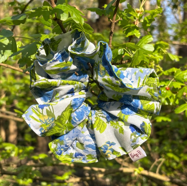 Pretty handcrafted scrunchies in white and floral print cotton. Love your cottage core dreams!
