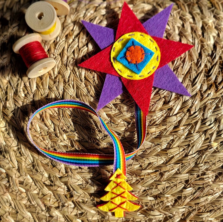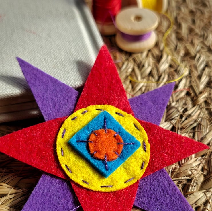 The top part of the bookmark is a star shape measuring approximately 9 cm x 9 cm, made from felt and carefully crafted with layered felt and embroidered details.