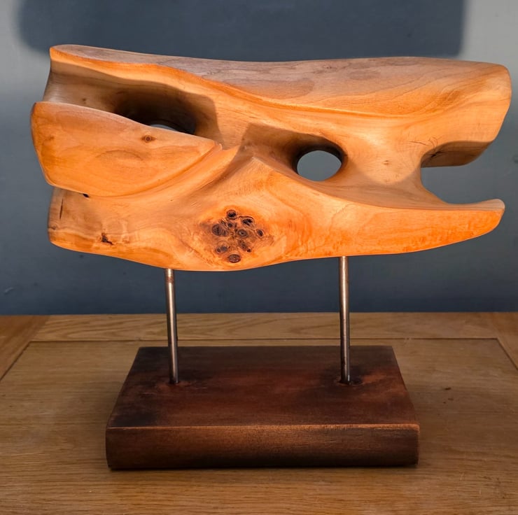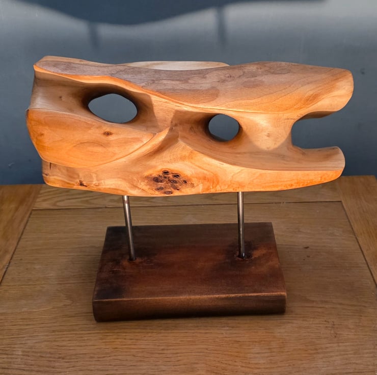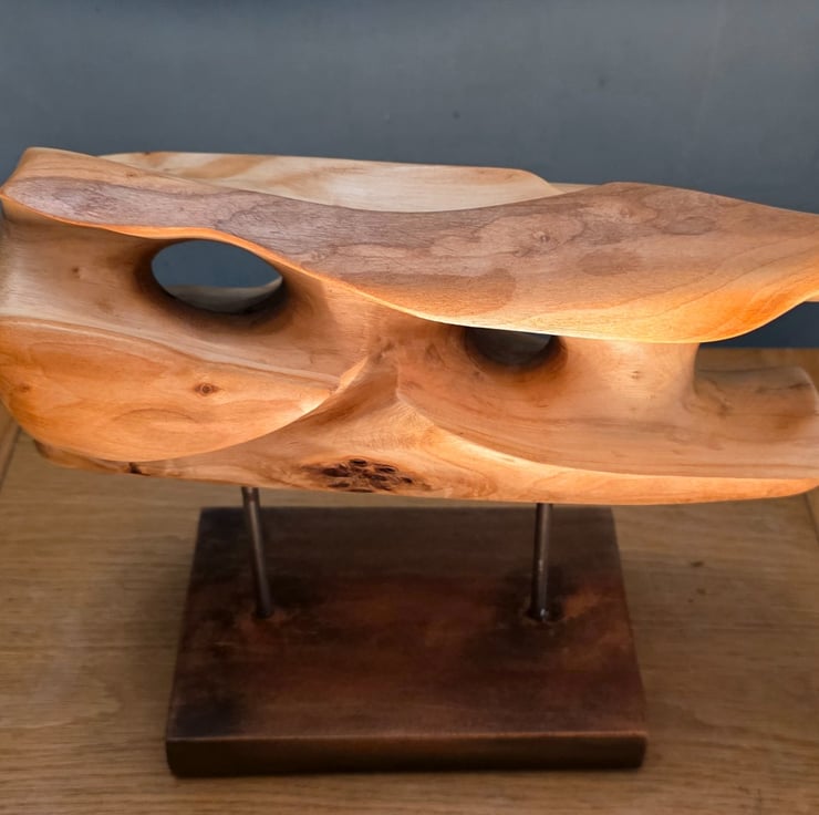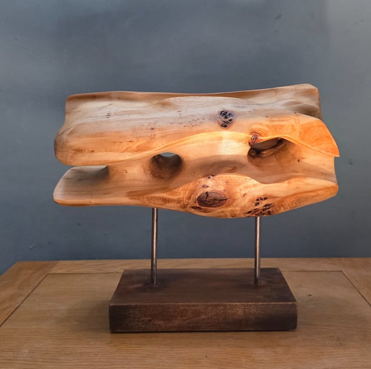 Eroded Horizon is a hand-carved sculpture inspired by windswept rock. It took 12 hours of carving to create these organic hollows and fluid ridges."
