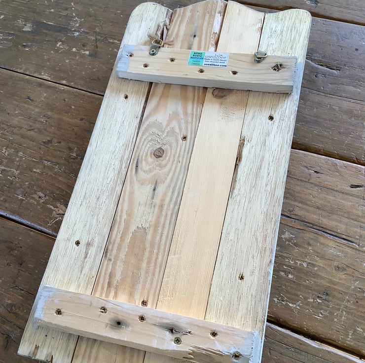 It is made from solid reclaimed pallet wood, glued and screwed for strength, and come with 2 hanging D rings attached (fixings supplied too)