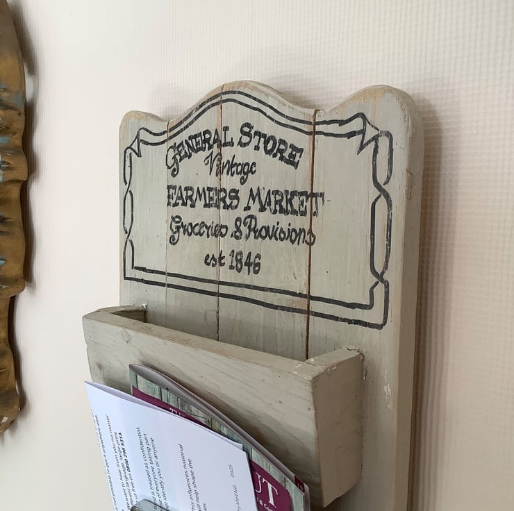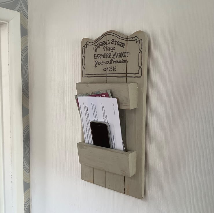 This is a really useful item typically used by a door to keep mail, documents, phone or wallet safe and ready to use.