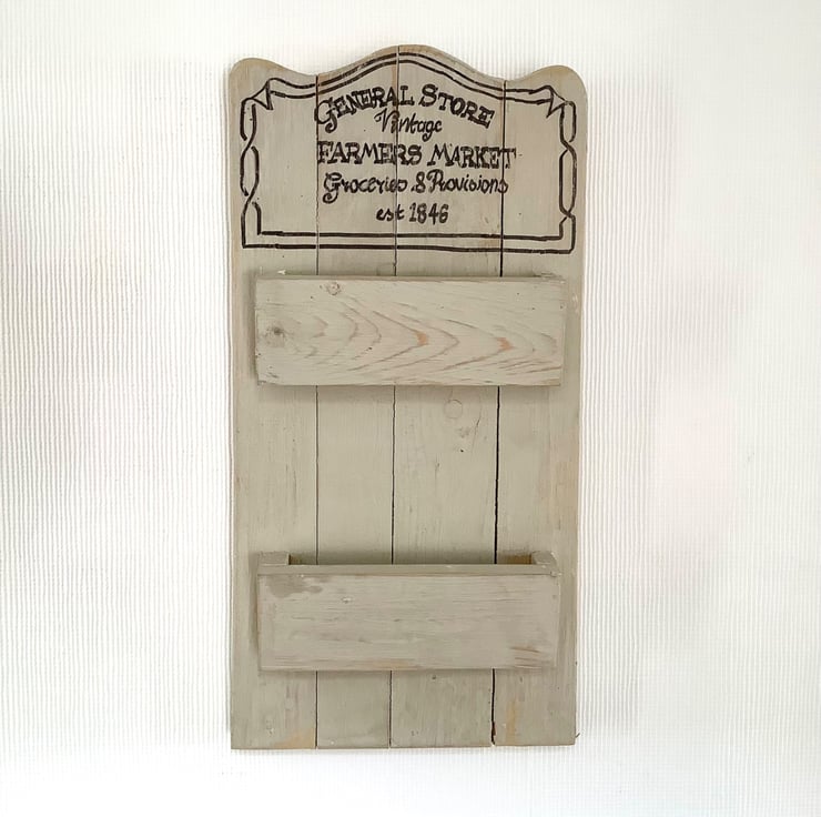 It is painted with Frenchic eco emulsion in a taupe cream colour, lightly sanded smooth, then finished with beeswax.