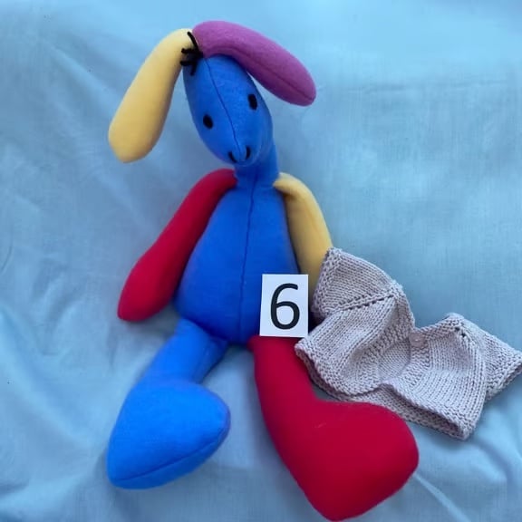 This squidgy, colourful Bunny Rabbit is a nice addition to a nursery, playroom, toy box, pram or anywhere else your child chooses to carry it. With it's long limbs, body and ears there is plenty to hold on to. It measures 62 cms stretched out. ( sounds painful ).