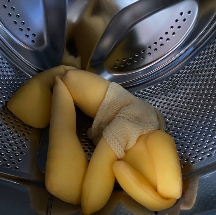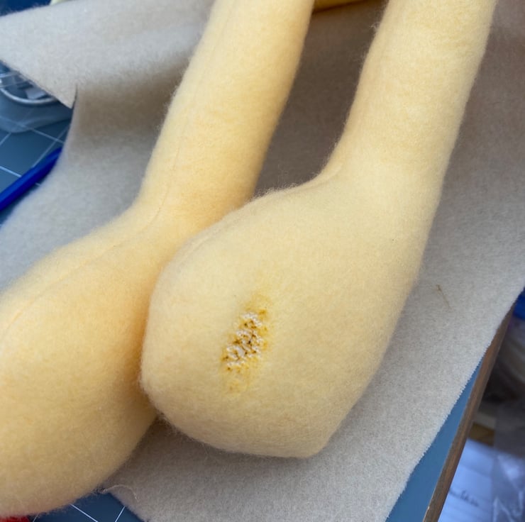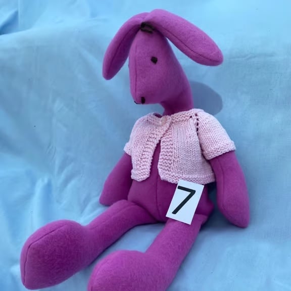 I made them from single-sided fleece which is also used for dressing gowns and comes in a nice variety of colours and with its polyester filling this means the rabbit is fully machine washable with a fast spin and then only needs air drying.
