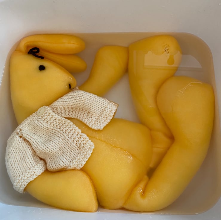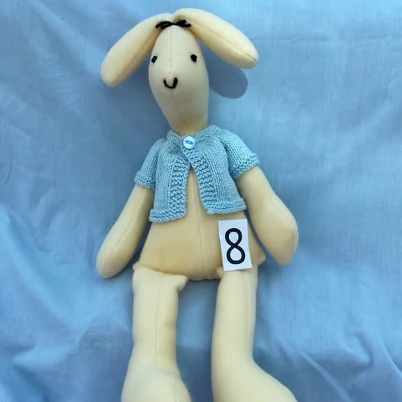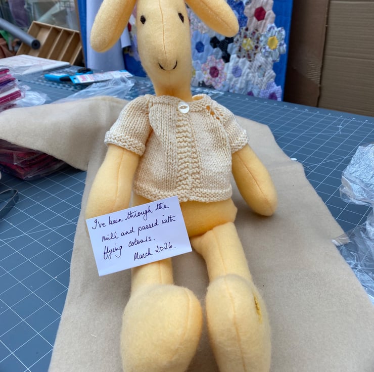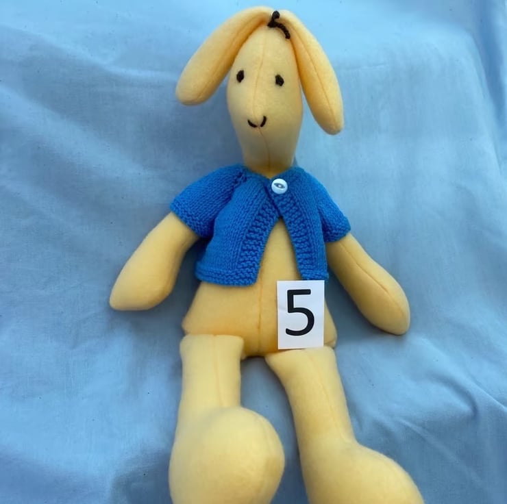 I embroidered the eyes, nose and top-knot with a single length of yarn so there are no small parts to worry about, as well as the UKCA TESTING I have put one of them through, making this bunny suitable from birth once you have removed the jacket.