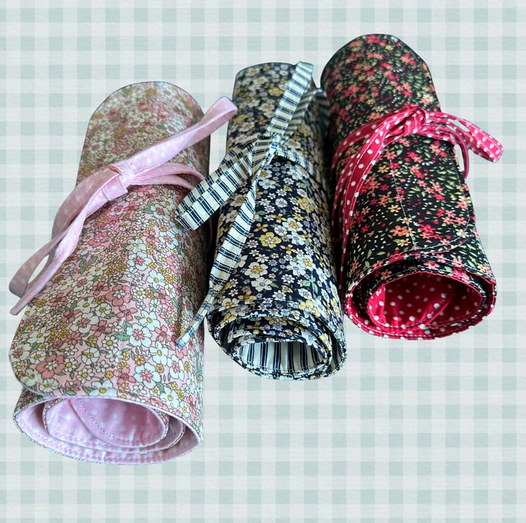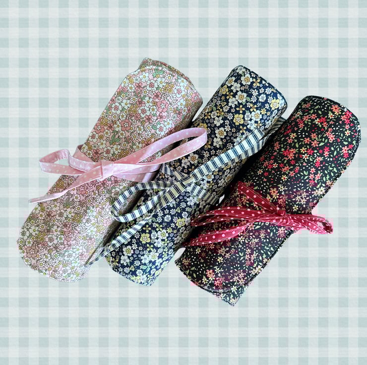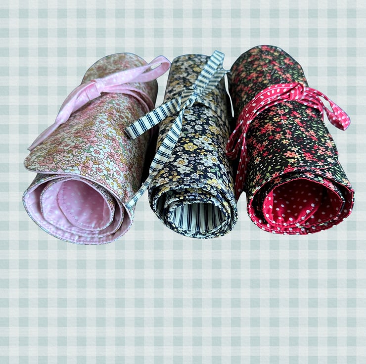 Each organiser is made by hand using quality cotton fabrics, chosen for their timeless prints and nostalgic feel. Careful stitching ensures it is durable enough for everyday use while remaining flexible and easy to roll.