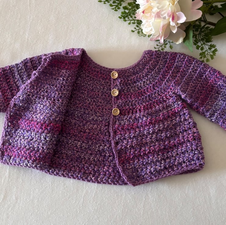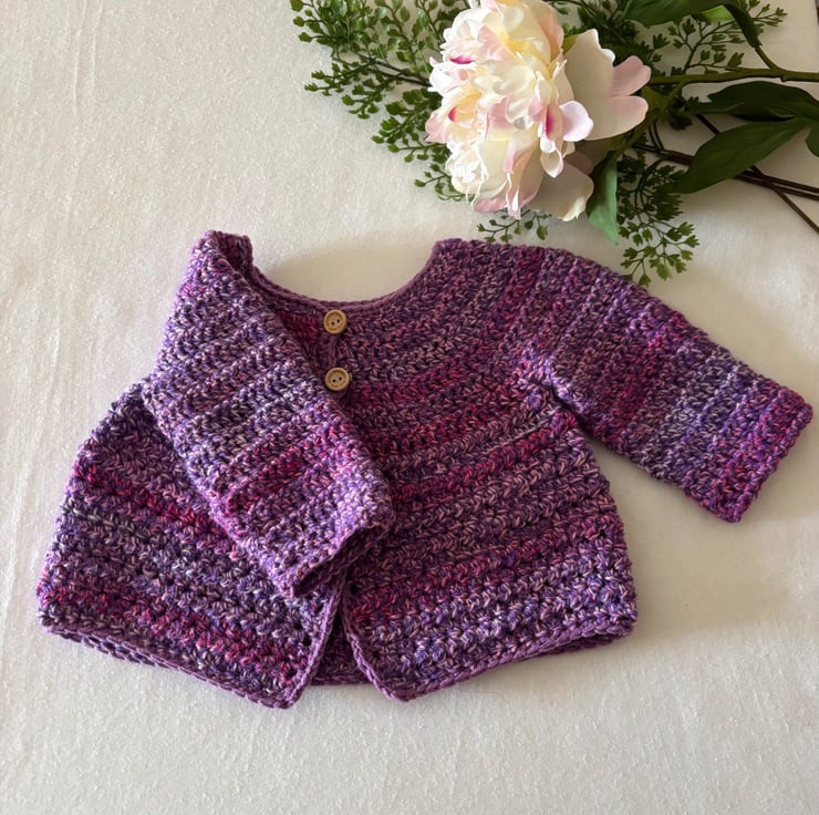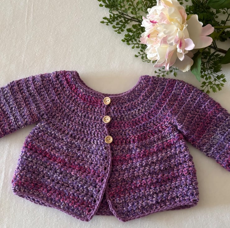 This handmade, crochet baby jacket/cardigan is crafted from premium acrylic, designed for comfort and durability. Ideal for 3 to 6 months, it features a seamless design with 3 cute buttons, perfect for everyday wear or a unique gift. Available in custom colours if preferred.