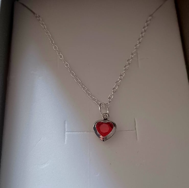 Pretty silver chain with a delicate silver tone red love heart charm.
