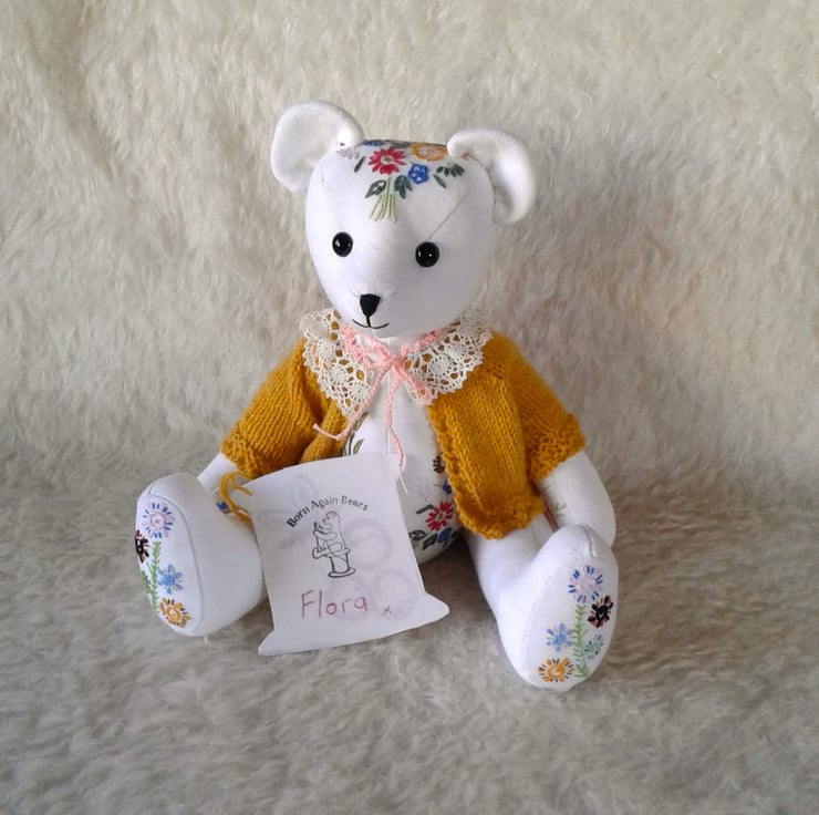 I will post Flora via Royal Mail 24hr tracked wrapped in tissue paper and included will be a label with my Born Again Bears stamp and the bear's name.