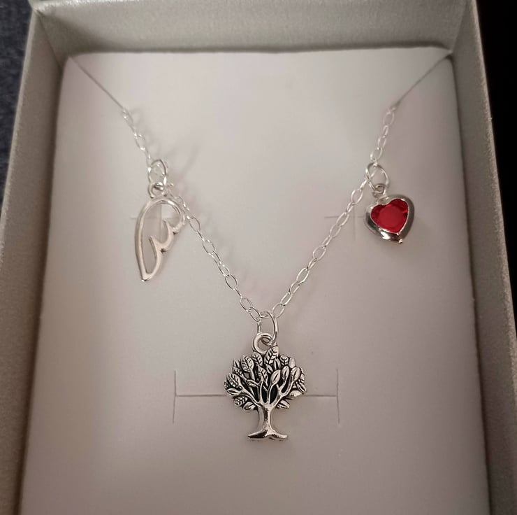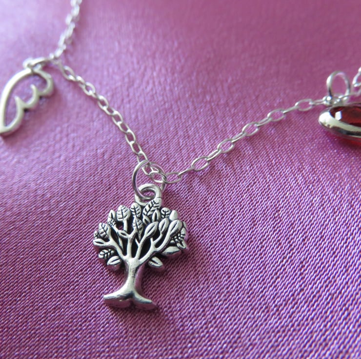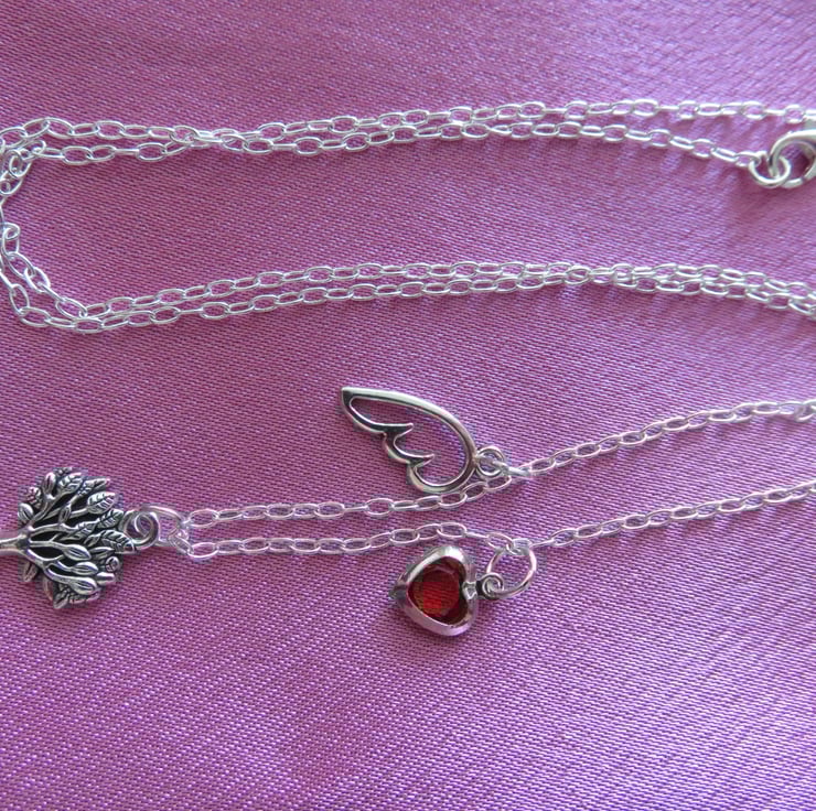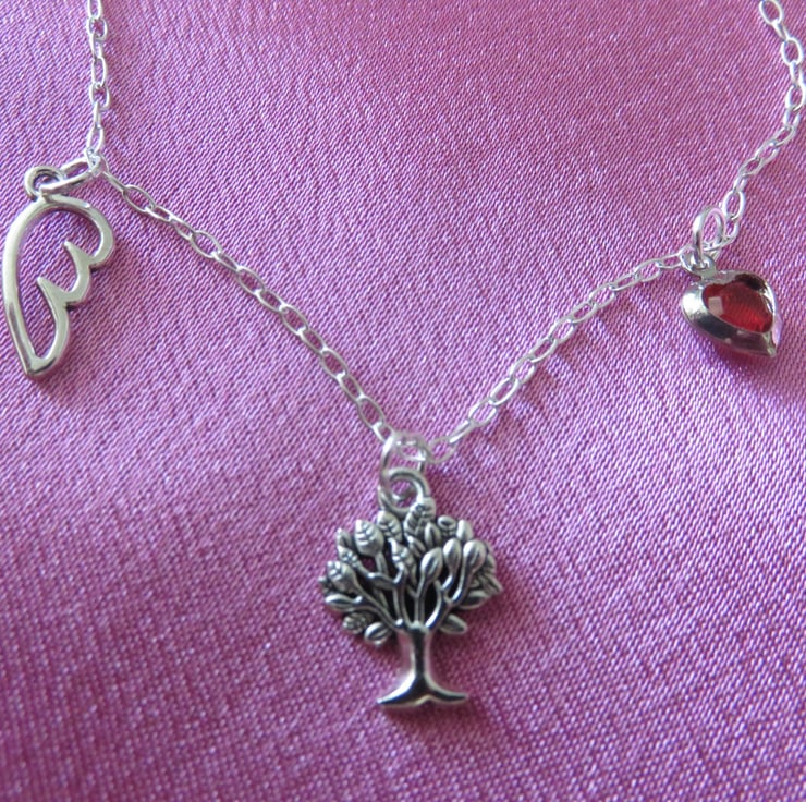 This pretty tree of life charm necklace has an added angel wing and love heart.