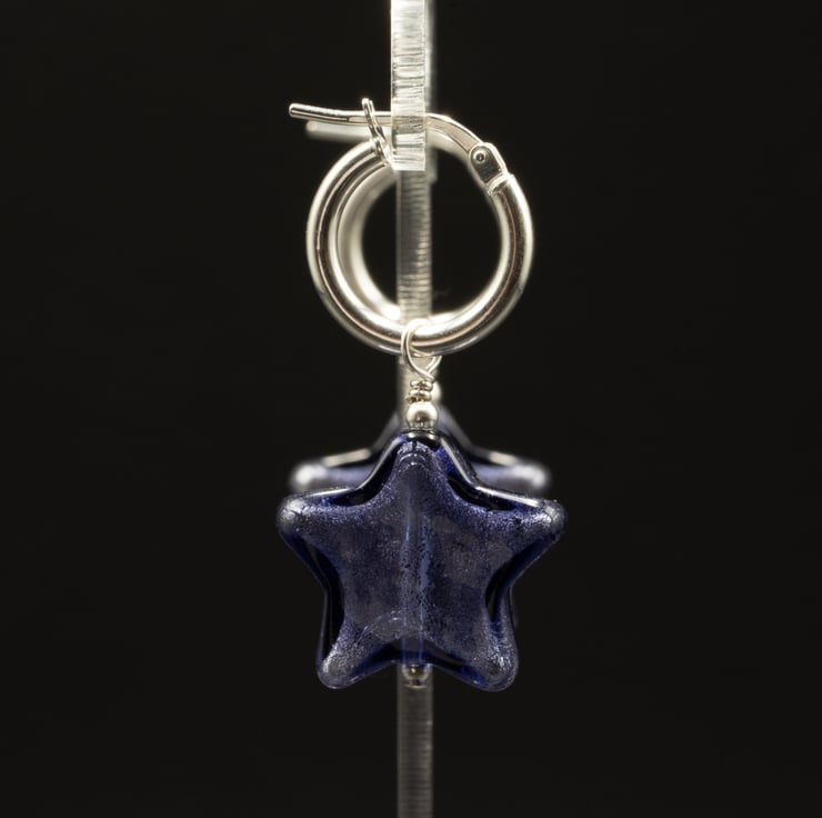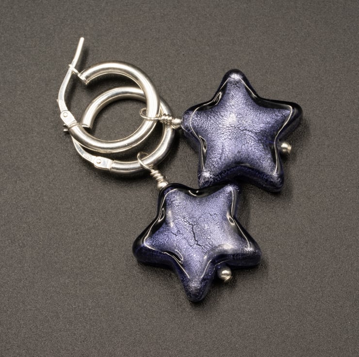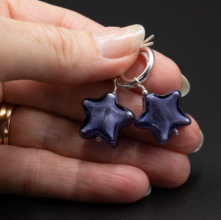 These gorgeous star drops have a base of silver foil covered in a midnight blue coating of murano glass to give a lovely shimmering effect.