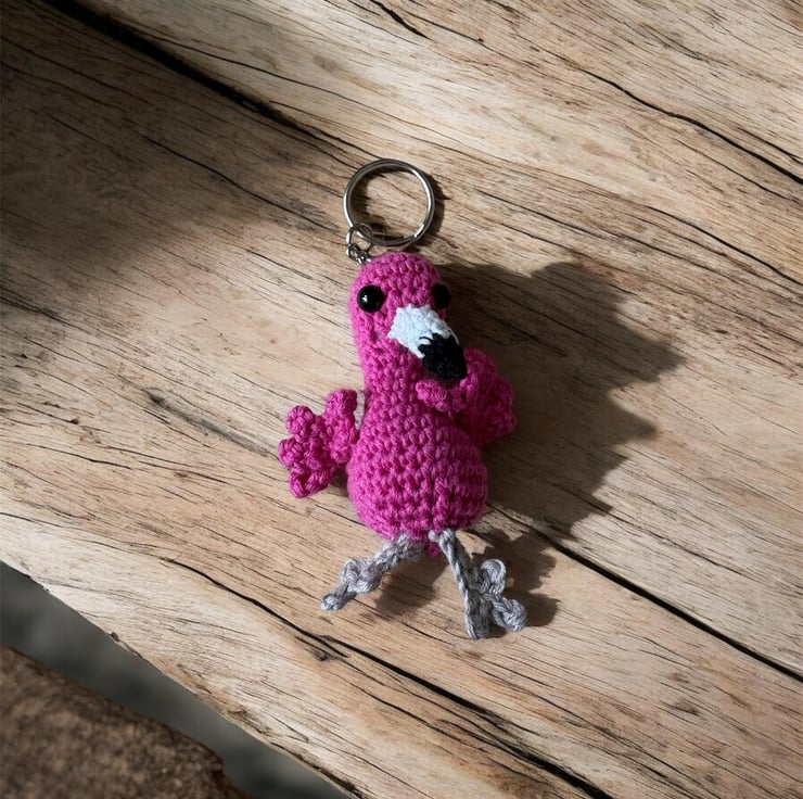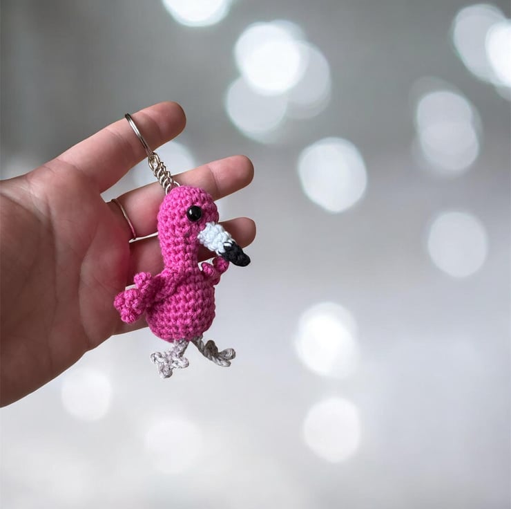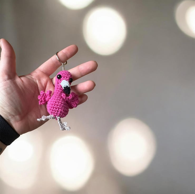 Handmade Crochet Flamingo Keychain Amigurumi Bag Charm, Soft Plush Accessory