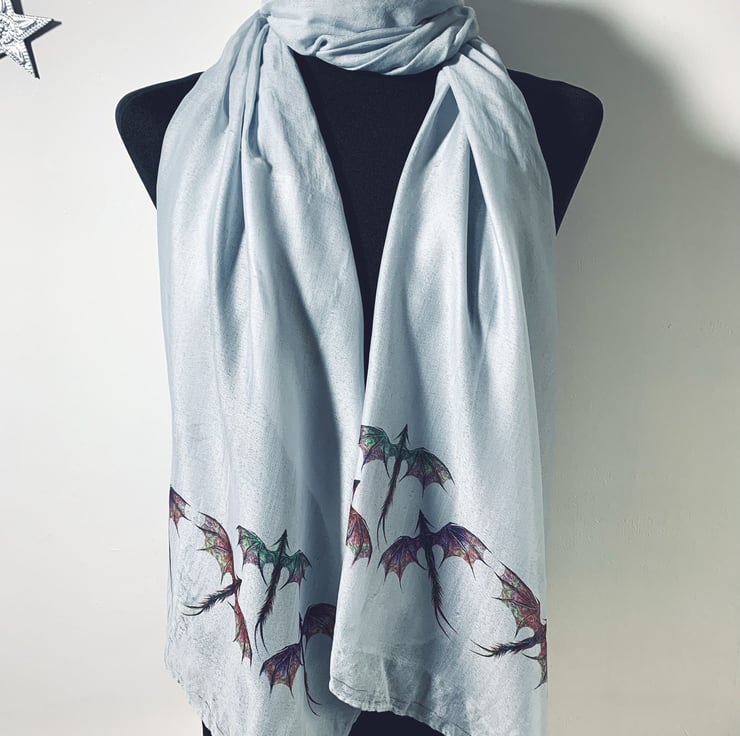 This long dragon scarf has been hand printed, using my original art work to create a bohemian style gift for her.
