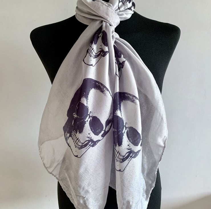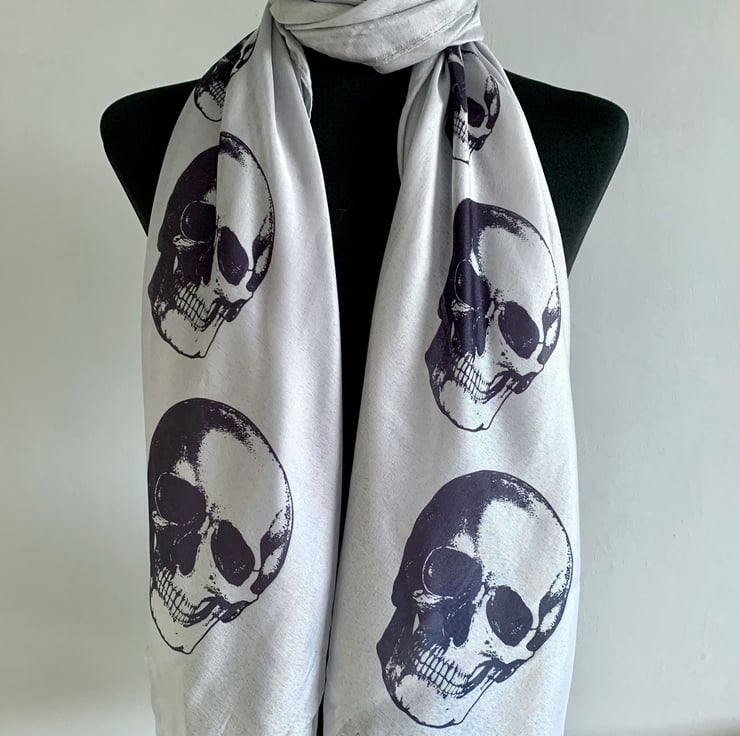 This long Skulls scarf has been hand printed to create a Gothic Punk style gift for her.