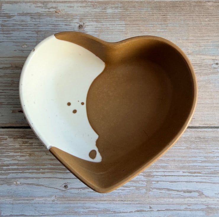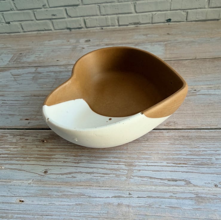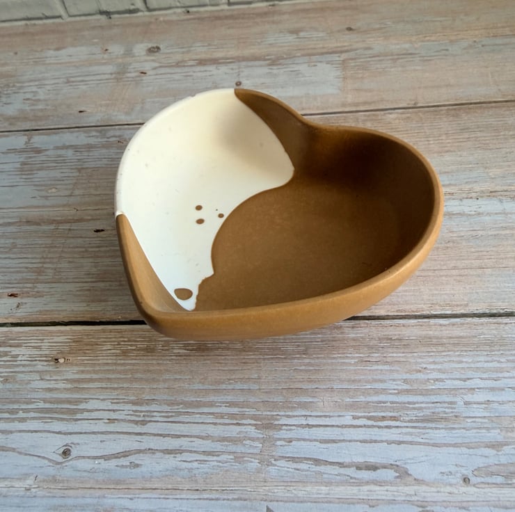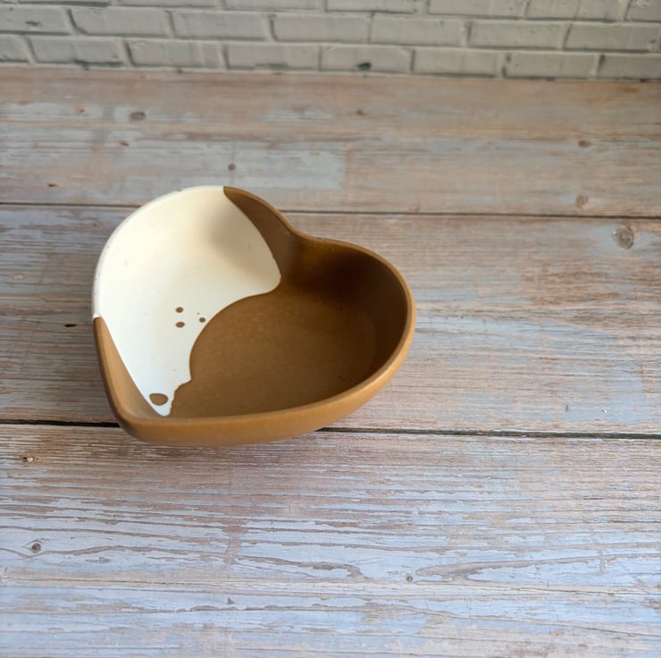 This small heart shaped trinket dish is handcrafted from premium Jesmonite and finished in a soothing blend of cream and earthy brown tones. Measuring approximately 3 inches, it's the perfect petite catch all for rings, earrings, keys, or those tiny keepsakes you want to keep close.