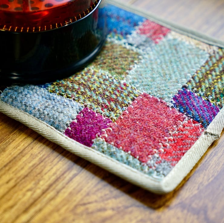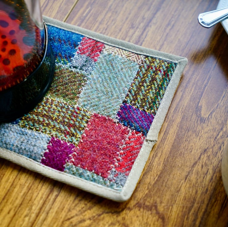 Create your own patchwork pot mat using Harris / Scottish tweed sourced from my studio.
