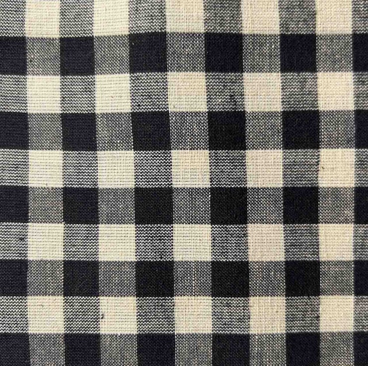 Black gingham interwoven with cream thread to create the traditional check pattern.