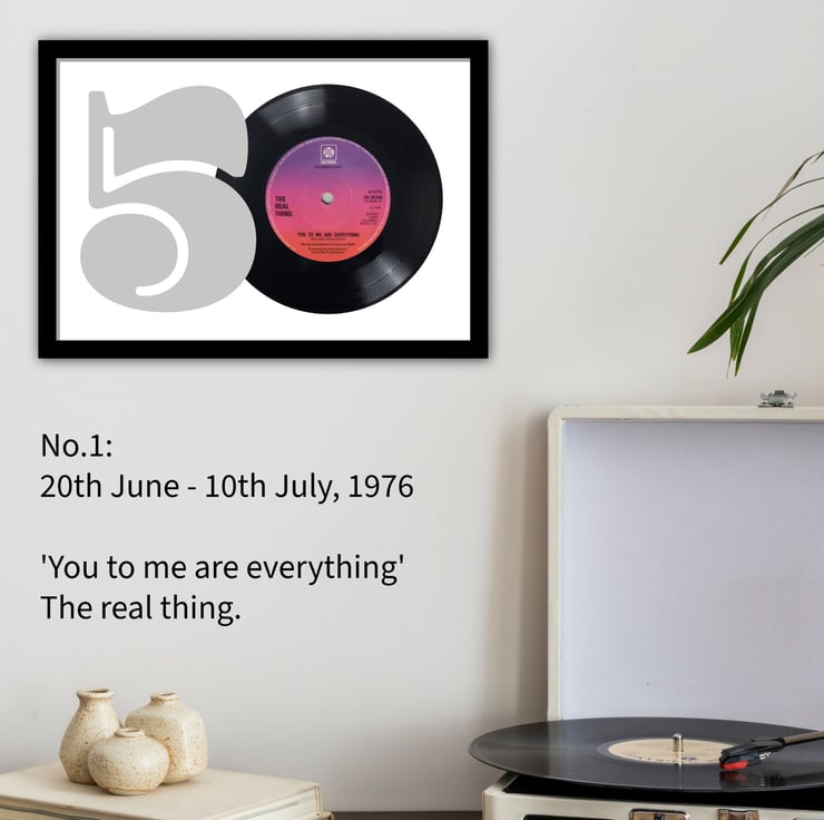 Mark their 50th in style with a framed original 7 inch UK No.1 vinyl from the week they were born.