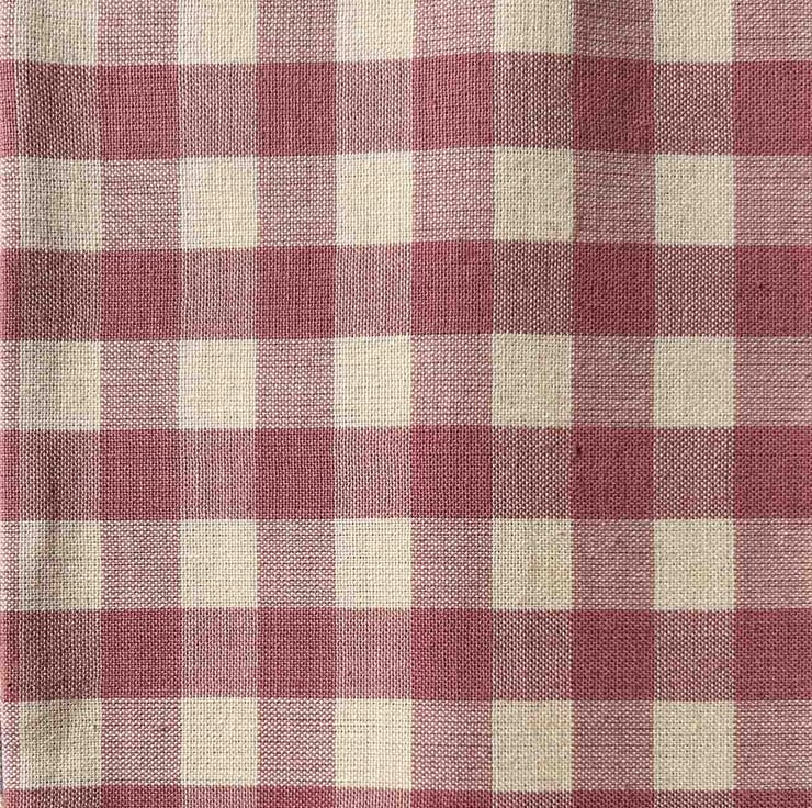 Pink gingham interwoven with cream thread to create the traditional check pattern.