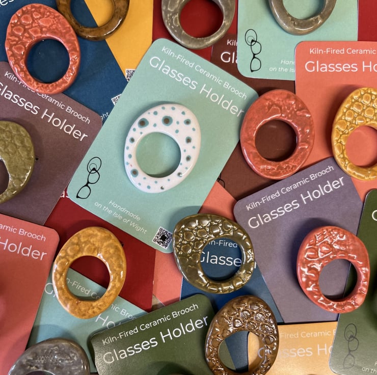 Handmade ceramic stoneware brooch, perfect for holding your glasses.