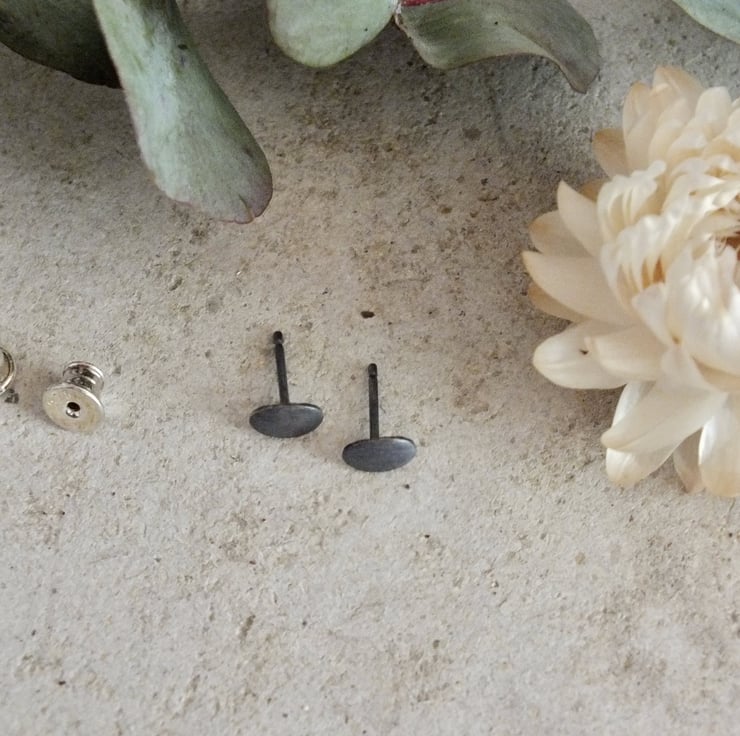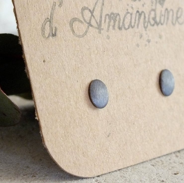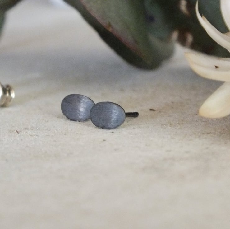 These brushed oval studs are made from sterling silver and oxidised to obtain a refined dark shade. Minimal yet quite sophisticated, these silver earrings are thoughtfully crafted to be worn elegantly on their own or to enhance other jewellery.