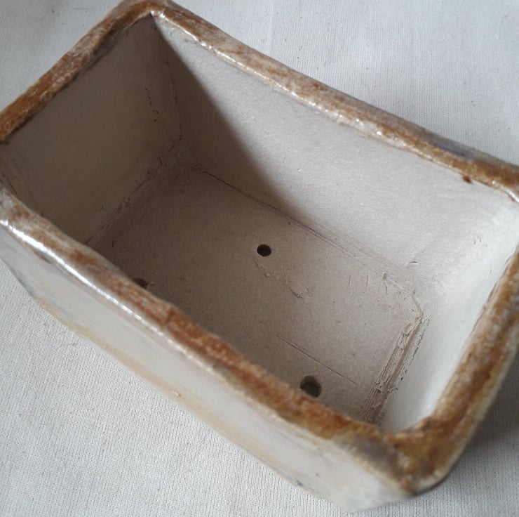 Made to conveniently sit on narrow windowsills, this planter is handmade using slab-building processes; this means it is slightly wonky, but that's part of the charm. The colour palette and shape are informed by Scottish drystone walls.