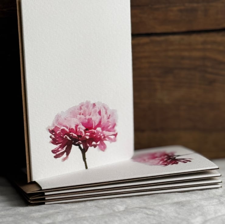 Pink Chrysanthemum flowers Card: Spread joy and celebrate with this stylish, blank individual A6 greeting card perfect for Weddings, Mother's Day, Birthdays or just to say hi or thank you.