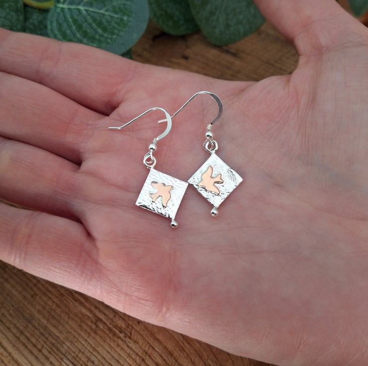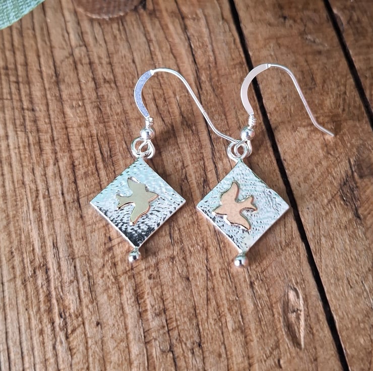 One of the gold birds has unfortunately sunk into the silver in the soldering process and doesn't look as neat and aligned as the other one, which is why I'm offering these earrings as seconds to a slightly reduced price.
