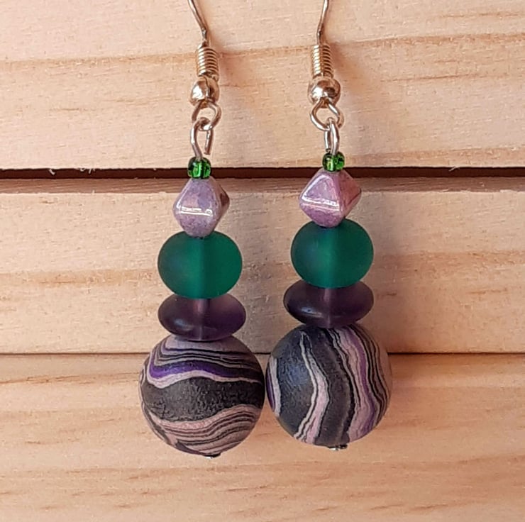 These earrings would go well with the purple, green and lilac disc necklace featured in my necklace collection. Although they are not made from the same batch of clay they complement each other for a coordinated look.