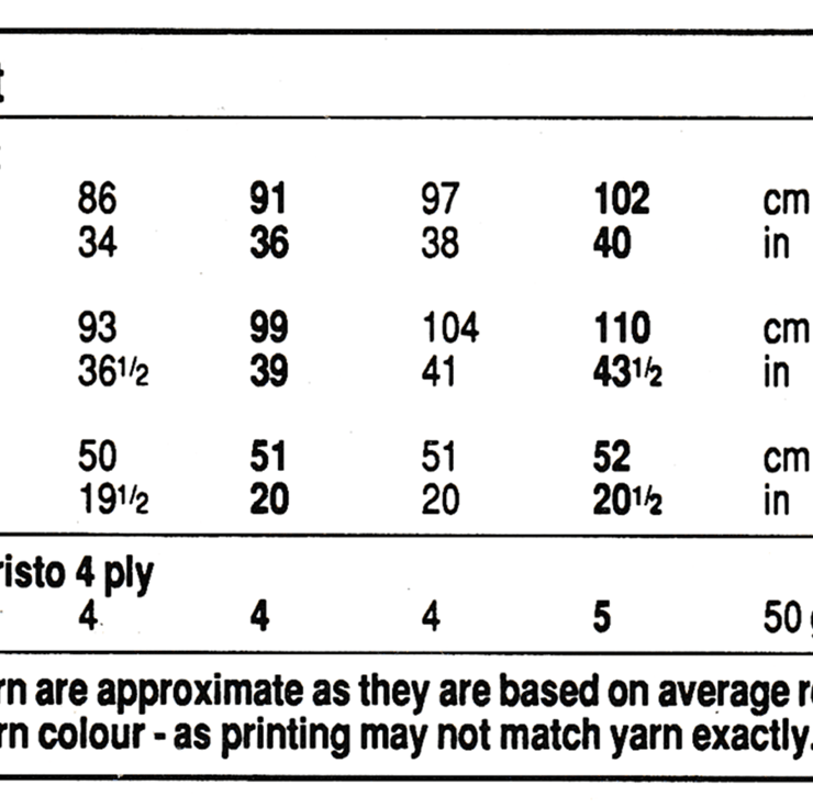 To fit bust: 76 to 102 cm or 30 to 40 inches. It is knitted in 4 ply knitting yarn using 2.75 mm and 3.25 mm knitting needles.