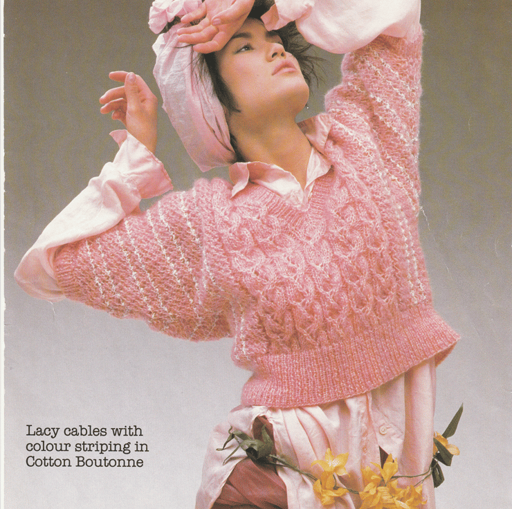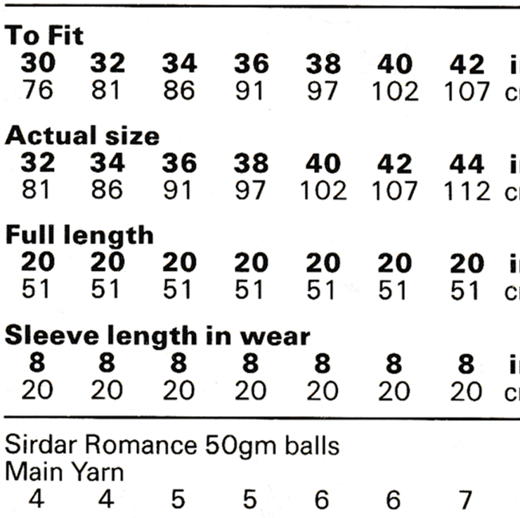 To fit bust: 76 to 102 cm or 30 to 40 inches. It is knitted in double knitting yarn using 3.25 mm and 5 mm knitting needles.
