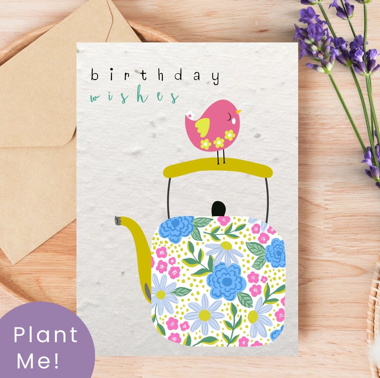 Send a message that grows! This vibrant flower design is printed on premium seed paper, turning a simple birthday card into a gift that keeps on growing.