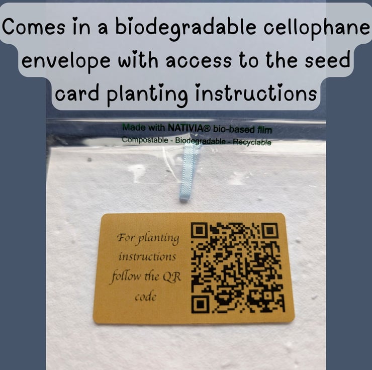 The heart and card come presented in a compostable cellophane envelope with a QR code attached to the back for easy access to the planting instructions.
