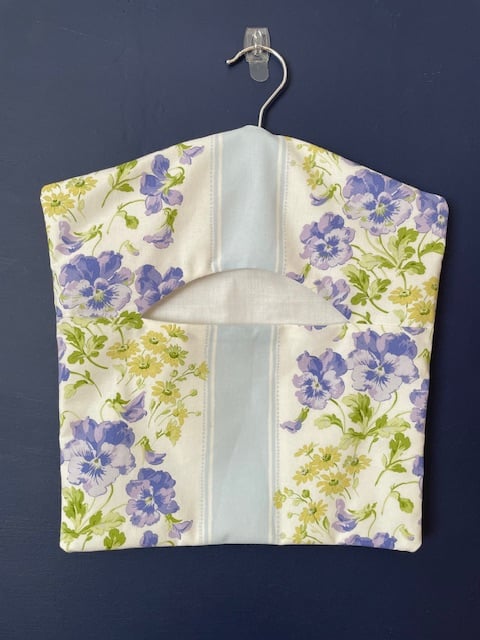 Laundry may be boring but it doesn't need to be dull! Brighten up your washing line with this cheery floral peg bag which I've made using some vintage Laura Ashley fabric featuring a pattern of pansies and daisies with a central pale blue stripe. This is a one-off item as I've run out of this particular fabric and just had enough to make one last peg bag.