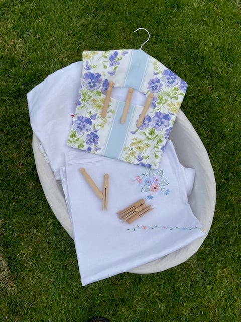 I'm a great believer in introducing as much cheer into our lives wherever possible. Whether this is using your 'best' china, treating yourself to a bunch of daffodils, or simply making time to read a copy of your favourite magazine with a cup of tea. I'm sure that I am not alone in finding laundry rather tedious, but the sight of colourful peg bag hanging on the washing line makes it much less dreary!