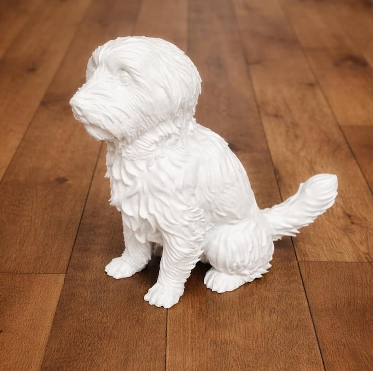 Create a custom figurine of your pet, designed from your photos and finished in a clean, unpainted white look.