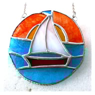 This is a stained glass suncatcher made using the Tiffany copper foil technique.